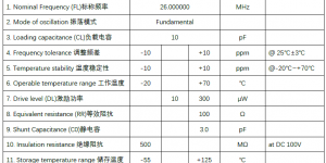 10pF 26MHz无源贴片晶振SMD2520 规格参数说明