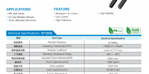 (32.678KHz 贴片晶振SMD3215尺寸图) 晶诺威科技产32.678KHz 贴片晶振SMD3215电气参数说明如下: 32.768KHz晶振主要应用领域 汽车电子:中控仪表、多媒体娱乐系统、行车记录仪、T-BOX、胎压监测仪等 智能终端:可穿戴电子产品、手机、数码相机、Pad、PC、多功能…时间:2024/01/02 -